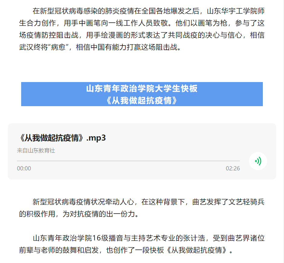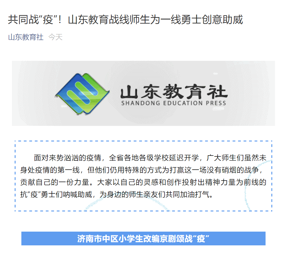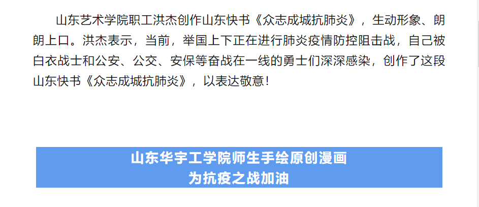 “艺”起抗疫 当前位置: 本站首页 >> “艺”起抗疫 >> 正文 【山东教育社】共同战“疫”!山东教育战线师生为一线勇士创意助威 发布日期:2020-02-03 点击: 地址链接:https://mp.weixin.qq.com/s/IqYahb-DtPMbyl0D2C5akw 上一篇:【大众网 海报新闻】以艺术发声,用艺术抗“疫”!山艺师生用作品驰援抗疫一线的医护人员! 下一篇:【鲁网】以艺发声,用艺抗“疫”!山艺师生用作品驰援抗疫一线的医护人员!